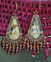 So I applied a patina to the components, got some nice pictures that I glued to them, covered with Ice Resin, made headpins and earwires which were patinated, cleaned with steel wool, tumbled, and wrapped with freeform or fat wraps with various gemstones.